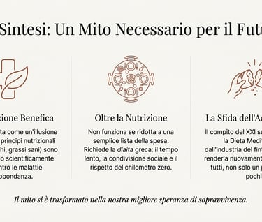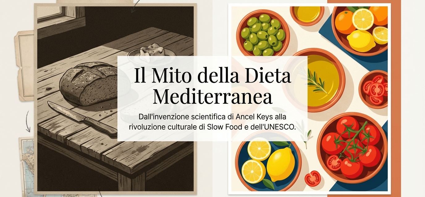 Riassumiamo alcuni concetti sulla famigerata Dieta Mediterranea, definendola non come una realtà storica millenaria, ma come un’invenzione accademica degli anni '50 ideata dagli studiosi americani Ancel e Margaret Keys. Gli autori evidenziano il paradosso di un modello salutista basato sulla frugalità e sui prodotti vegetali, nato osservando popolazioni rurali che in realtà vivevano in condizioni di estrema miseria e carestia. La narrazione si sposta poi sull'evoluzione del concetto verso la diaita greca, intesa come stile di vita conviviale, portando al prestigioso riconoscimento dell'UNESCO come Patrimonio Immateriale. Viene inoltre denunciata la moderna manipolazione industriale, che sfrutta questo marchio per vendere cibi ultra-processati mentre le popolazioni locali affrontano l'obesità. In definitiva, le fonti invitano a difendere i principi di stagionalità e genuinità propri di questo mito, nonostante le sue origini siano radicate in una realtà sociale ormai scomparsa.